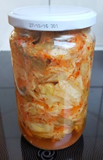 Die Gläser jetzt 2-3 Wochen im Kühlschrank stehen und fermentieren lassen. Das KimChi kann bis zu einem halben Jahr geschlossen im Kühlschrank aufbewahrt werden, sofern keine Äpfel verwendet wurden,ist es jedoch einmal geöffnet worden sollte es zeitnah verzehrt werden